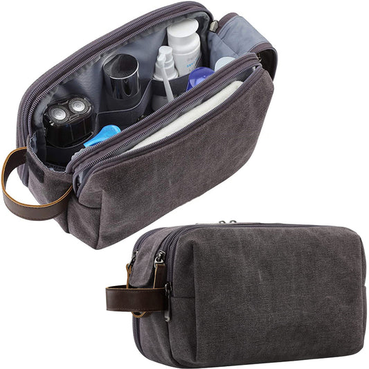 Travel Toiletry Bag | Water-resistant bag made with Washed Canvas and PU Leather for Cosmetics, Makeup, Shaving Accessories